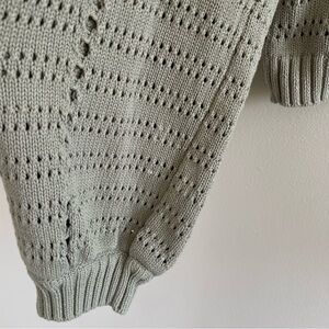 Open stitch cotton sweater with a rib crew neckline and rib waistband and cuffs