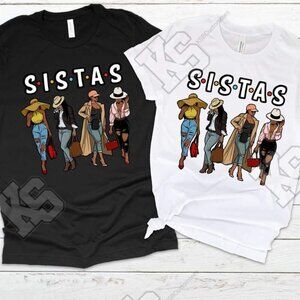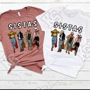 Sistas Tee. Beautiful, black, strong. It goes without saying. Available in most sizes, crew neck, white, short or long sleeve (additional $7). Ask about other colors availability when ordering. Please specify color and type of tee. Also available in a tote or on a hoodie. Get yours today!!