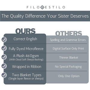 π§Ώπ©ββ€οΈβπ© Made Extra Thick for Sisters Who Feel the Cold: The Sister blanket has a combined 460gsm of colored, printed fleece, backed with a snuggly soft white sherpa. It is the hug of love your sister can embrace herself in, any time she needs it.