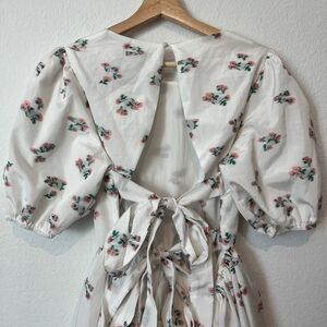 Sister Jane Dream White Floral Embroidered Taffeta Puff Sleeve Tie Back Dress XL