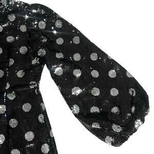 Sister Jane Olympic Long Sleeve Polka Dot Sequin Mini Dress Black Silver Medium