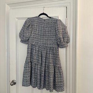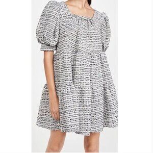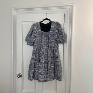 Sister Jane Waltz Tweed Confetti Mini Dress Babydoll Puff Sleeve Tiered Size M