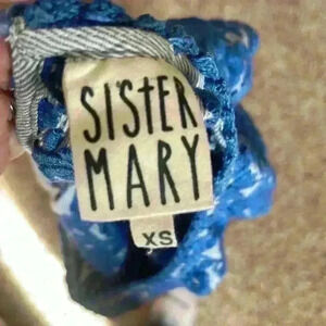Sister Mary Blue Embroidered Pinstripe Shift Dress Size XS