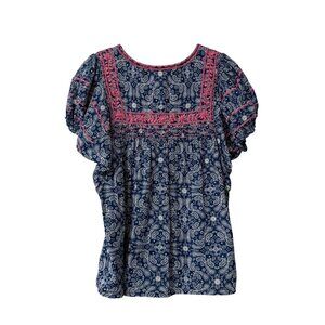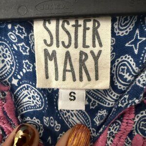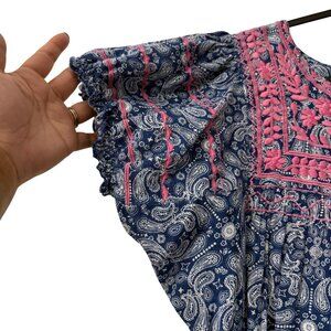 Sister Mary Blue Paisley Bandana Pink Embroidered Blouse Womens Size Small
