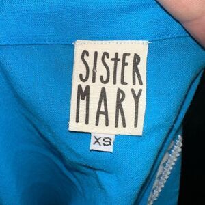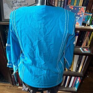 Sister Mary blue embroidered boho split neck XS peasant blouse