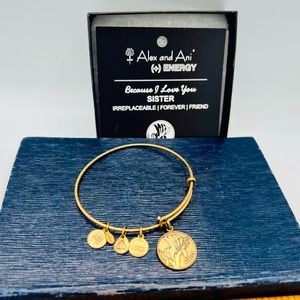 Beautiful antique bronze ALEX & ANI bracelet, new in box! “Because I Love You Sister”.