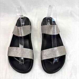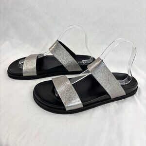 Sister x Soeur Silver Leather Sandals Women’s 39 8/8.5 Metallic Two Strap