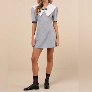 Sister Jane Gray & White Oversized Collar Mini Dress(Size Medium)