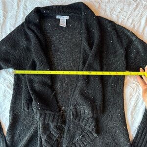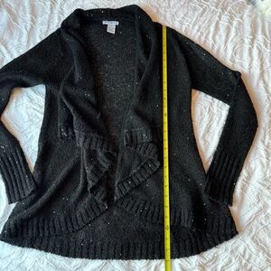 Sisters Black Sequins Ruffle Silhouette Knit Cardigan