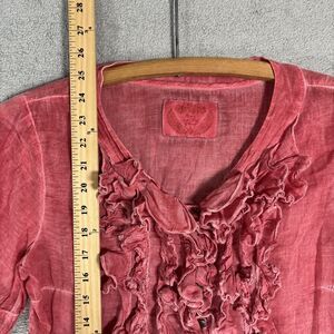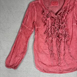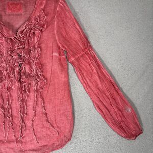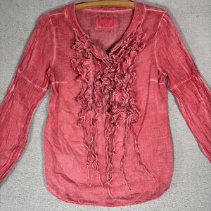 Sisters Blouse Size M Salmon Pink Crinkle Ruffle Placket Boho Victorian Artsy
