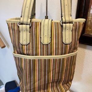 Sisters Brand By Longaberger. Sage Leather HoboShoulderBag w Vertical Stripe.EUC