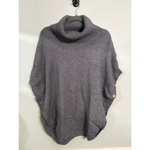 Sisters Gray Ribbed Turtleneck Poncho Sweater with Button Sides – Size XL