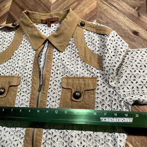 Sisters Jacket Sz Medium Eyelet Zip Linen Blend Pockets Western Cottagecore