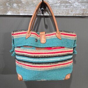 This is a super cool large wool western tote bag by Sisters Stacy & Laurie McFadin Sisters. It is navajo blanket Inspired design.