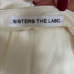 White satin mini dress by Sisters The Label. This has been altered to fit a size 0! Gathered the neckline, took in the sides and hemmed (was previously a "one size fits all" dress). Pretty beaded straps that drape down the back. Low back and very short!