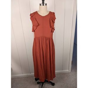 Sita Murt Women’s Rust Orange Ruffle Trim Midi Dress Size Small