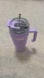 Insulated stainless steel tumbler with handle and stainless steel straw.