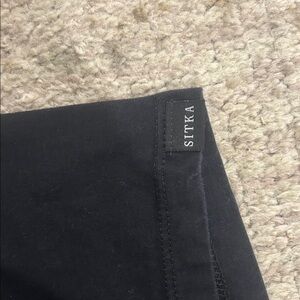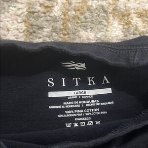 Sitka black t-shirt with a bold logo design. Comfortable and stylish. Some peeling on logo (see detailed photo).