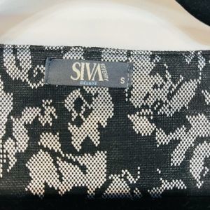 Siva Seventy Black & Gray floral print long sleeve top with zipper cold shoulders.