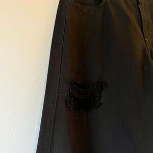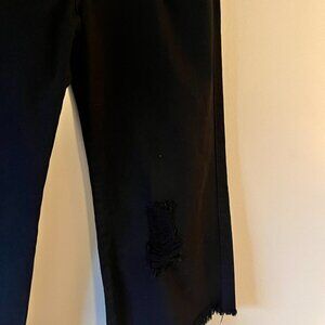 These jeans are distressed. There are four spots with distressed holes. If you look closely you can see all the spots in the first picture.