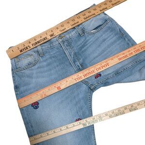 Stylish ankle jeans by Siwy. Light blue denim with red embroidered details. Perfect for casual wear.