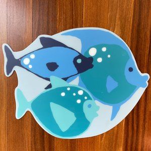 Six (6) Vinyl Blue / Teal Trio of Fish Placemats