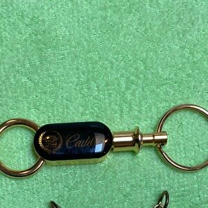 Six Cadillac Gold Tone Key Charms. In Good Pre Owned Condition.