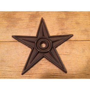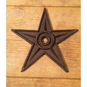 Set of Six Cast Iron Extra Large 9" Center Hole Texas Stars Six Extra Large Rust Cast Iron Stars With Center Holes These are Extra Large solid Cast Iron Stars They Measures 9" Wide The Center Hole is Tapered The Front Hole opening is About 5/8" wide The Hole then Tapers down to About 3/4" wide on the Back Need More? I have a Large Supply I Give Deep Discounts On Large Qty Orders