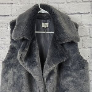 Six Crisp Days XS/S Gray Faux Fur Vest Anthropologie Shaggy Teddy Jacket Retro