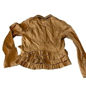 Six Degrees Of Separation Tan Blazer Blouse Button Up Ruffle Back Rough Hem Larg