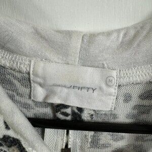 Six Fifty snow leopard back zippered soft cozy hoodie. Sz M. 77% polyester 20% rayon, 3% spandex.