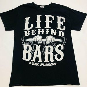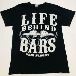 Six Flags Magic Mountain Black Behind Bars Roller Coaster T Shirt Mens Size M