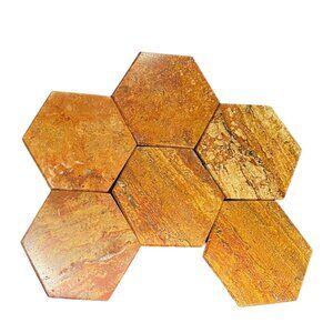 Six Hexagon Marble Coasters Stone Holder Set of 6 Crystals Sedona Travertine Sto