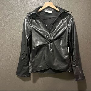 Need a date night top? This Glamour Top is calling you! This faux leather twist top is comfortable and sexy, making it the perfect addition to any wardrobe. The classic look is perfectly paired with a colored pump for a night out.