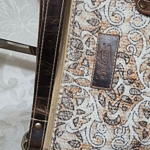 With a little love this is an awesome crossbody The Canvas is in good condition but leatger needs some love and polish. See scuffs on front and wear on crossbody strap. Can also be worn as a shoulder bag. inside is good