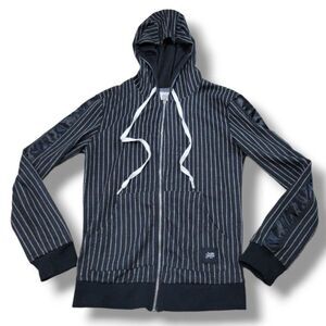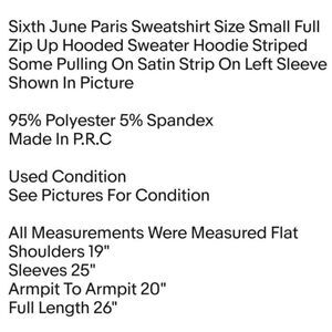 Sixth June Paris Sweatshirt Size Small Full Zip Up Hooded Sweater Hoodie Striped Some Pulling On Satin Strip On Left Sleeve Shown In Picture
