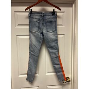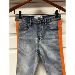 Sixth June Paris Orange Racing Stripe Men’s Button Fly Jeans sz 29