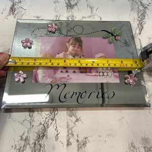 Never used, NEW Beautiful Mirrored Frame! Frame is in excellent condition, no chips or nicks. Fits a 4x6 photo, as shown on the picture. Also please look at the photos for the appropriate measurements of the whole frame itself. The back of the frame has a little wear due to storage. Please note that this item comes from a pet free & smoke free home. All items are package with care. Thank you for stopping by!
