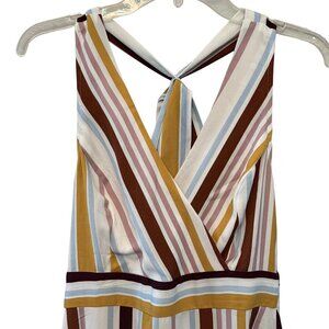 Sixty & Co Ecru Mustard Striped Midi Dress with Crossover Straps & Pockets is in amazing condition.