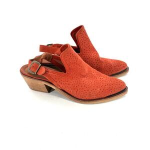 Sixty Seven Perforated Suede Mules 8 Rust Orange Heels Western Sixtyseven