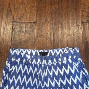 These high-waisted shorts from J. Crew feature a bold blue and white chevron pattern, perfect for making a statement. Crafted from a lightweight fabric, they offer a relaxed fit and an elastic waistband for ultimate comfort. Belt loops with front and back pockets! EXCELLENT CONDITION!