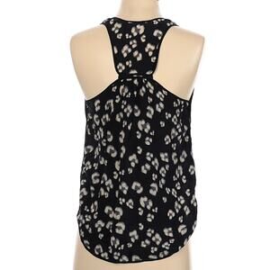 Size 0 Rebecca Taylor black & white 100% pure silk cheetah animal print racer back sleeveless v-neck tank top blouse