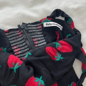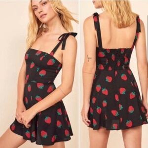 Size 0 Reformation Strawberry Print Mini Dress Tie Straps XS/XXS Zip Back