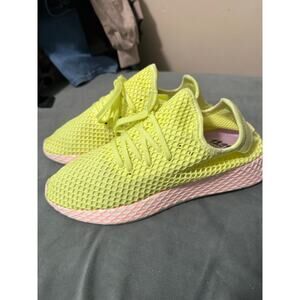 Size 10 Adidas Deerupt Neon yellow and pink sneakers