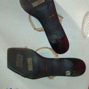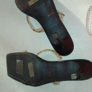 This shoes is definitely a show stopper with its beautiful lucite and rope designs. Needs a forever home.