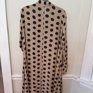 Made in Italy, long flowy polka dot shirt dress with detachable self belt and side pockets. A great dress to wear to a baby shower, baptism, graduation, you name it!
