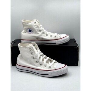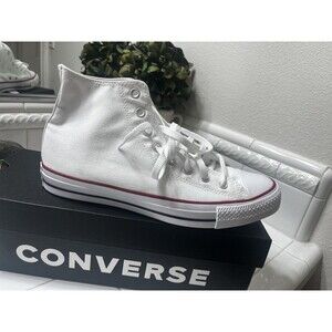 This is a brand new pair of Converse Chuck Taylor All Star Canvas High Top sneakers in size 10, box included, featuring the original white color and high top shoe. These athletic shoes are designed for men and this sneaker style is perfect for those looking for a blend of comfort and style, with a theme of stars to add a touch of flair to the overall design.