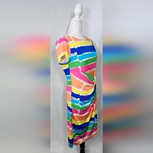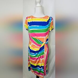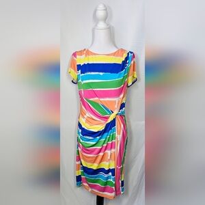 Size 10 Ellen Tracy Rainbow Stripe Ruched Dress