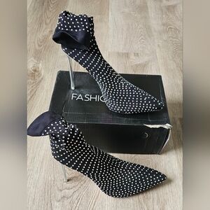 Size 10 Fashion Nova Black Rhinestone Sock Booties
