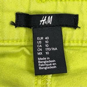 Size 10 H&M Lime Green Vibrant Shorts Stretch Cotton Blend Punk Goth